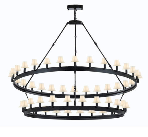 Set of 2 - Wrought Iron Vintage Barn Metal Castile Two Tier Chandelier Chandeliers Industrial Loft Rustic Lighting W 63" H 60" w/White Shades