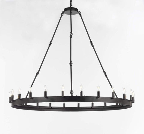 Set of 2 - Wrought Iron Vintage Barn Metal Castile One Tier Chandelier Chandeliers Industrial Loft Rustic Lighting W 50" H 48" - 2EA G7-3428/24