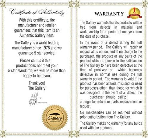 1. Each Item Comes With A Certificate Of Authenticity, Certifying This Product Is An Authentic Gallery Lighting Fixture.